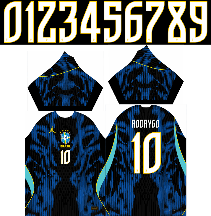 Primeiramente, garanta o faturamento da sua estamparia para o próximo ciclo mundial oferecendo a espetacular Arte Camisa Brasil Reserva 2026 – 2028. Atualmente, os torcedores brasileiros e as equipes de várzea buscam uniformes alternativos que tragam um visual muito mais agressivo e moderno do que o tradicional. Sendo assim, este arquivo digital foi meticulosamente recriado para entregar a estética exata da nova e ousada armadura “Away” da Seleção. Além disso, a combinação disruptiva da base em Preto com os grafismos vibrantes em Azul e detalhes em Amarelo Neon garante um visual de extremo impacto e personalidade.