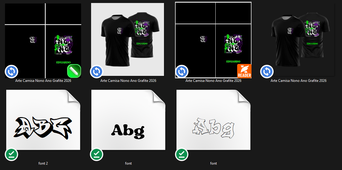 Fontes Instaláveis (TTF/OTF): O pacote acompanha as tipografias usadas no layout, permitindo que você personalize as costas da camisa com o nome de cada aluno da turma (como o exemplo “EDUARDO” em verde neon).