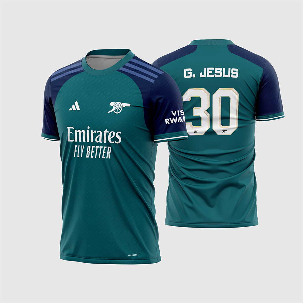 Primeiramente, prepare a sua estamparia para lucrar alto com a imensa torcida dos Gunners oferecendo a cobiçada Arte Vetor Camisa Arsenal Terceira 2023 – 2024. Atualmente, os apaixonados pelo futebol europeu buscam incansavelmente os uniformes alternativos, pois eles costumam trazer os designs mais inovadores e casuais da temporada. Sendo assim, este arquivo digital foi meticulosamente recriado para entregar a estética exata e elegante desta peça icônica. Além disso, a combinação sofisticada da base em Verde Esmeralda com as mangas em Azul Marinho garante um visual de extremo bom gosto e estilo para qualquer equipe ou torcedor.