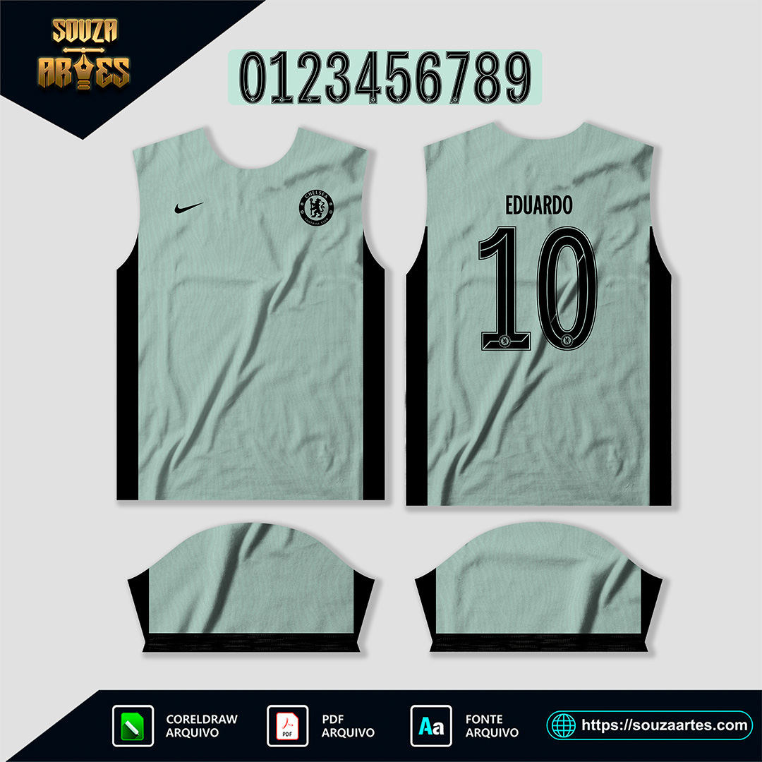 Você busca uma Arte Camisa Chelsea Terceira que capture a essência e o estilo do terceiro uniforme dos Blues para suas criações? Encontre aqui a ferramenta ideal para seus designs. Nossa arte é perfeita para designers, sublimadores e torcedores que buscam um arquivo exclusivo e totalmente editável. Sendo assim, você consegue designs incríveis para expressar o espírito da sua equipe.