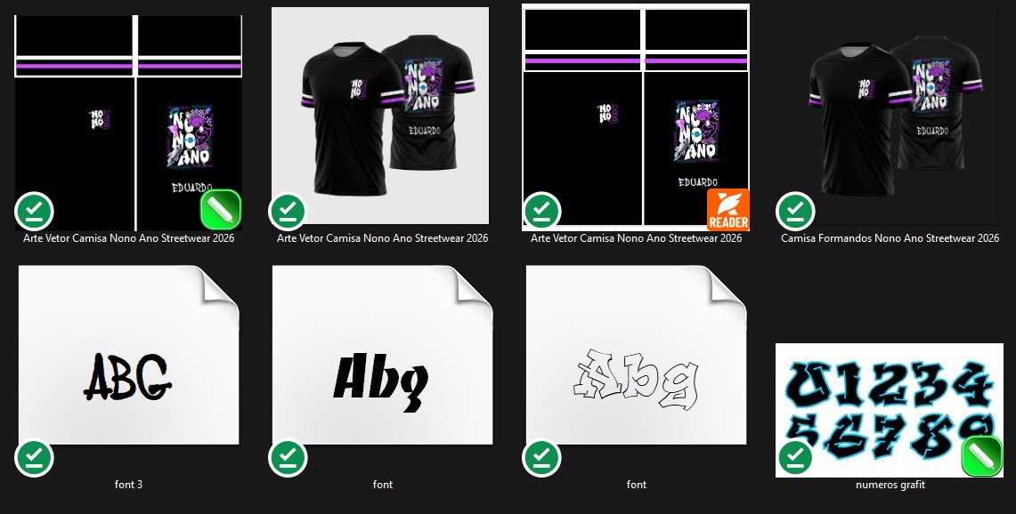 Fonte Instalável (TTF): O pacote acompanha a tipografia usada no layout, perfeita para personalizar a barra inferior das costas com o nome de cada aluno da turma (como o exemplo “EDUARDO”).