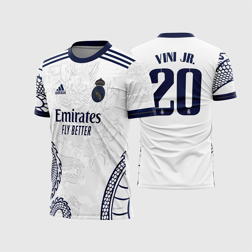Arte Vetor Camisa Real Madrid Dragão Chinês Branco 2022