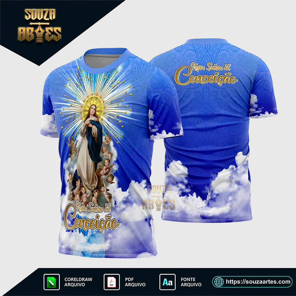 Você busca uma Arte Vetor Camisa Religião que capture a beleza, a serenidade e a santidade de Nossa Senhora da Imaculada Conceição? Encontre aqui a ferramenta ideal para seus designs. Nossa arte é perfeita para designers, sublimadores e fiéis que buscam um arquivo exclusivo e totalmente editável. Assim, você consegue designs incríveis para expressar a fé e a devoção em estampas religiosas.
