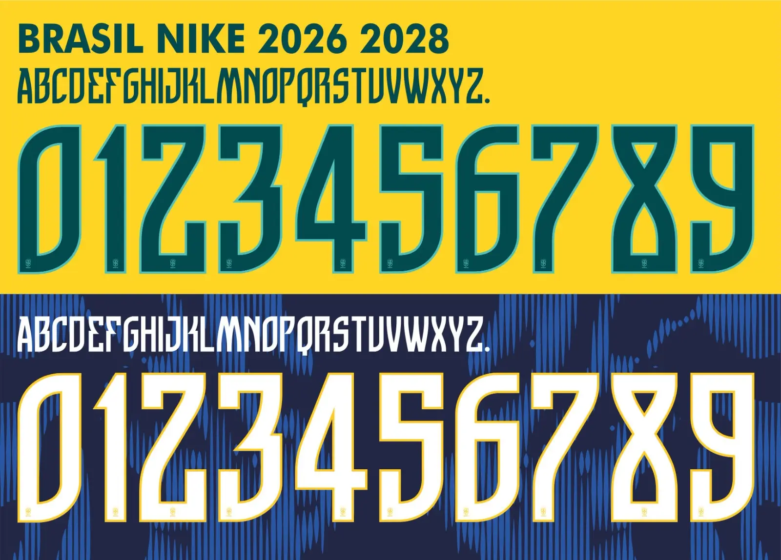 Primeiramente, multiplique os lucros da sua estamparia no ciclo da Copa oferecendo personalização completa com a Fonte Vetor Brasil Nike 2026 2028. Atualmente, os torcedores não querem apenas a camisa da Seleção; eles exigem ter o próprio nome e o número de seus ídolos estampados nas costas com máxima fidelidade. Sendo assim, este pacote digital foi meticulosamente desenvolvido para entregar a tipografia exata e oficial do novo uniforme canarinho. Além disso, o design arrojado, moderno e com recortes pontuais das letras e números garante um visual de extrema autenticidade e valorização da peça final.