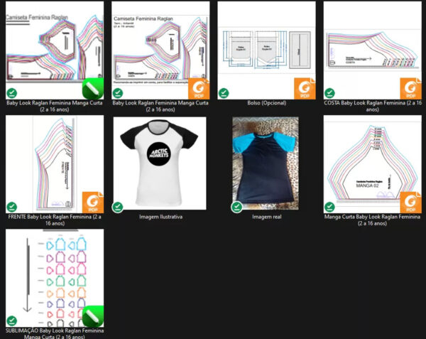 A qualidade do arquivo digital garante medidas exatas e simetria. Em outras palavras, você obtém um molde testado, com grade de tamanhos completa (P ao GG ou similar), pronto para imprimir em plotter ou em folhas A4 na sua impressora comum. Além disso, este molde é fundamental para quem trabalha com sublimação total, servindo como gabarito preciso para aplicar as artes antes do corte e costura.