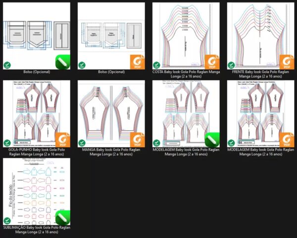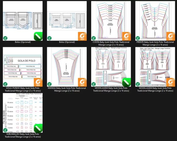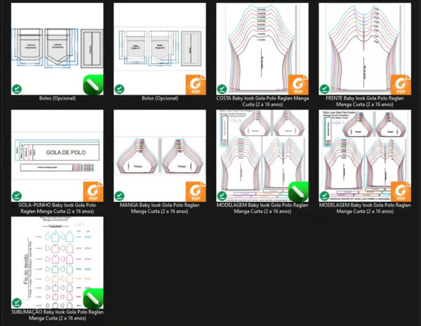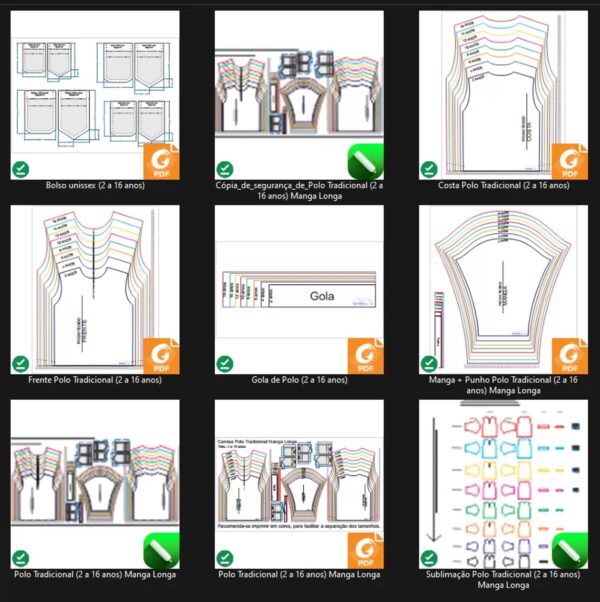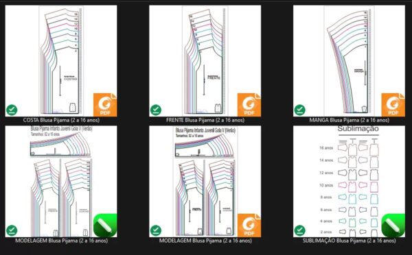 A qualidade do arquivo digital garante medidas exatas e simetria. Em outras palavras, você obtém um molde testado, com grade de tamanhos completa (P ao GG ou similar), pronto para imprimir em plotter ou em folhas A4 na sua impressora comum. Além disso, este molde é fundamental para quem trabalha com sublimação total, servindo como gabarito preciso para aplicar as artes antes do corte e costura.