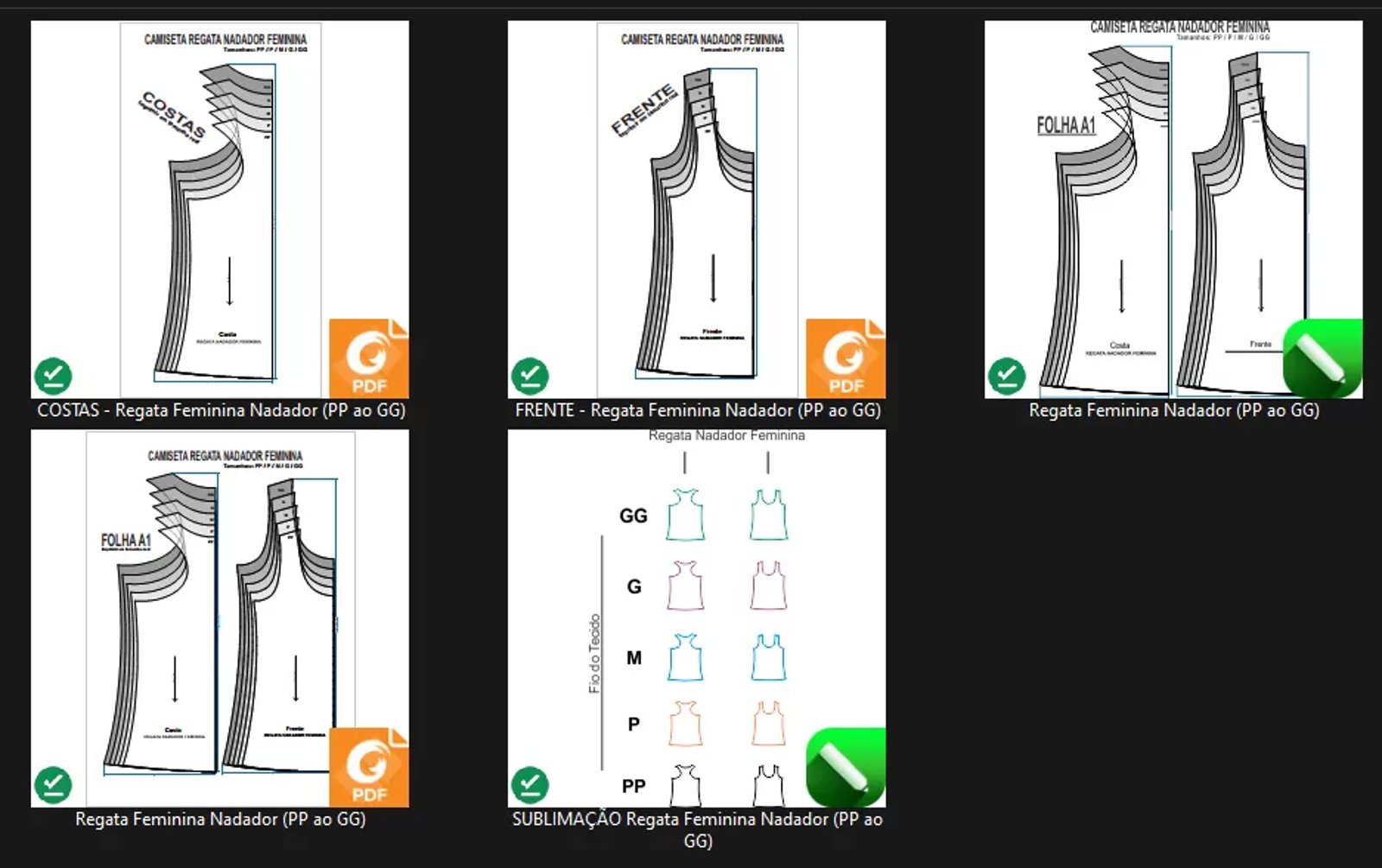 A qualidade do arquivo digital garante medidas exatas e simetria. Em outras palavras, você obtém um molde testado, com grade de tamanhos completa (P ao GG ou similar), pronto para imprimir em plotter ou em folhas A4 na sua impressora comum. Além disso, este molde é fundamental para quem trabalha com sublimação total, servindo como gabarito preciso para aplicar as artes antes do corte e costura.