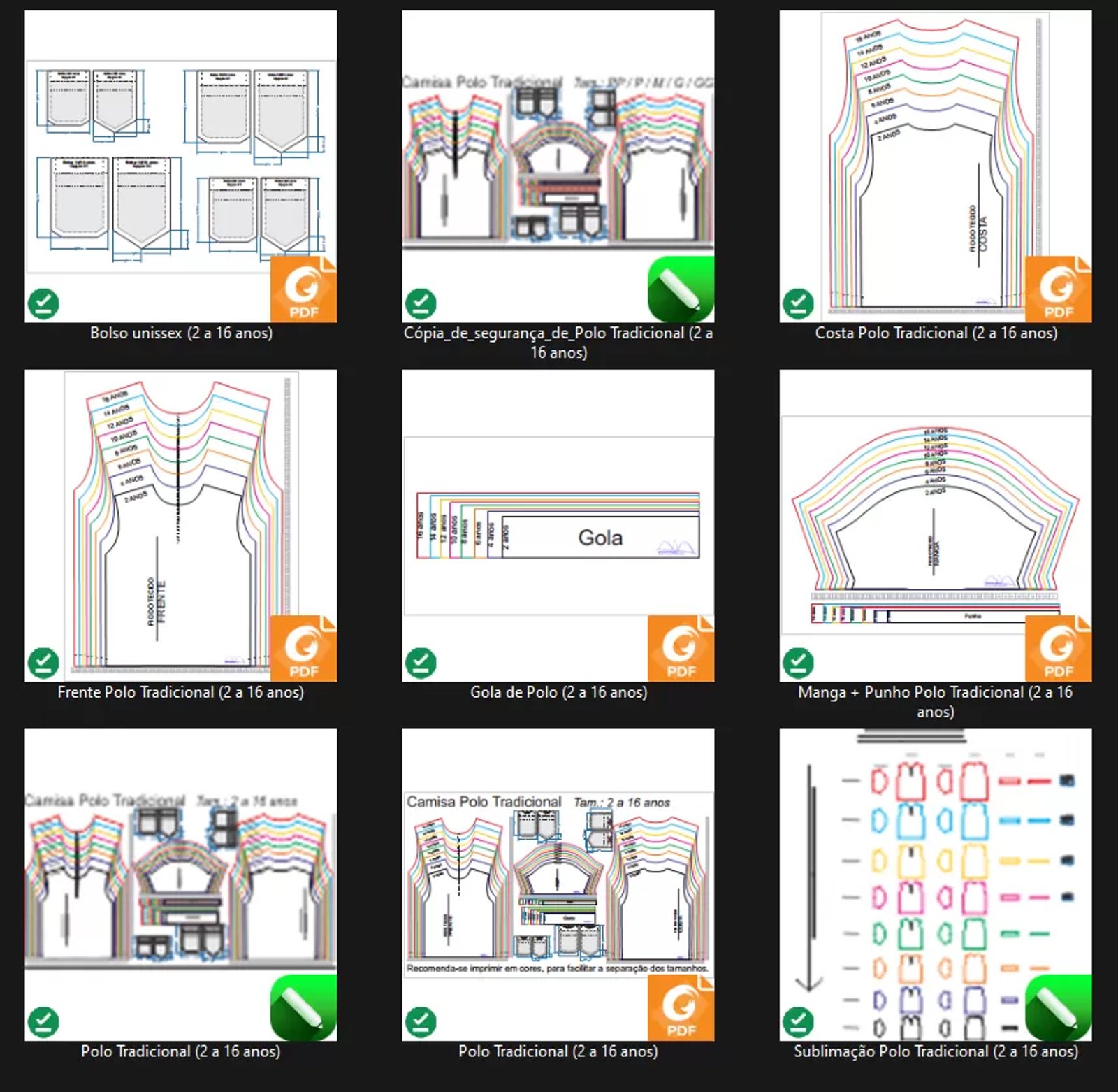 A qualidade do arquivo digital garante medidas exatas. Em outras palavras, você obtém um molde testado, com grade de tamanhos variada, pronto para imprimir em impressora comum (A4) ou plotter. Além disso, este molde é essencial para quem trabalha com sublimação total, servindo como gabarito para aplicar as artes antes do corte.
