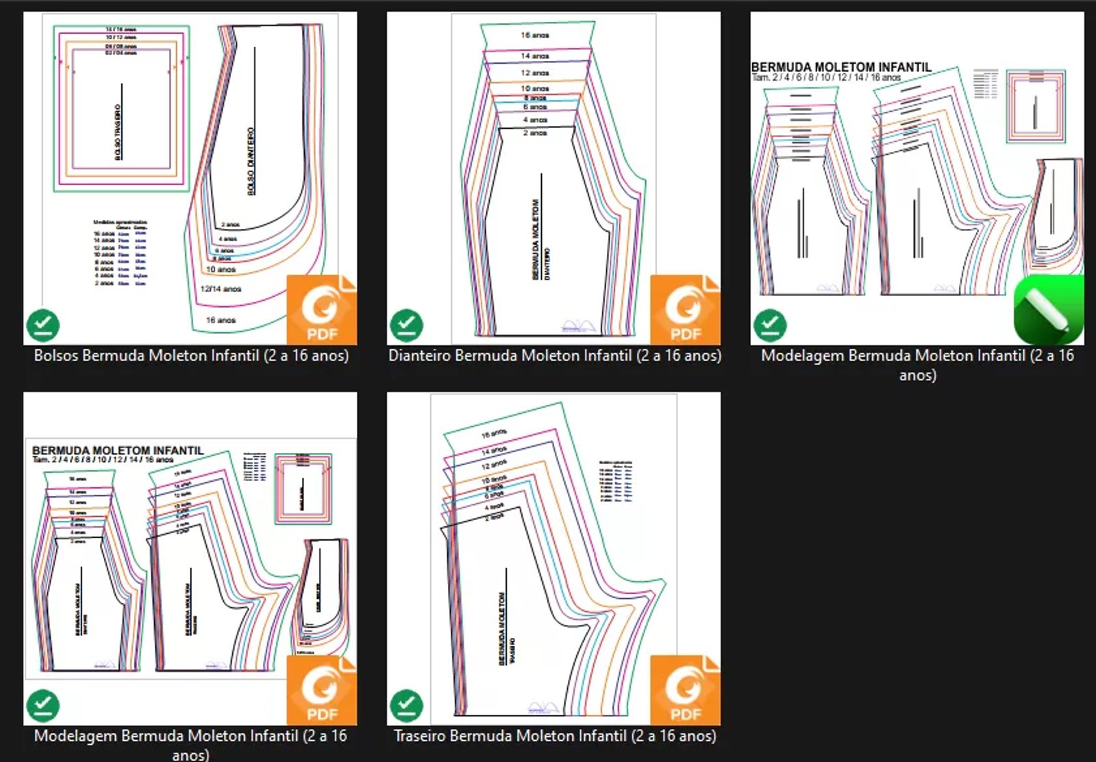 Molde de Costura Para Imprimir Camiseta Infantil – 33 – Bermuda Moletom Infantil (2 a 16 anos)